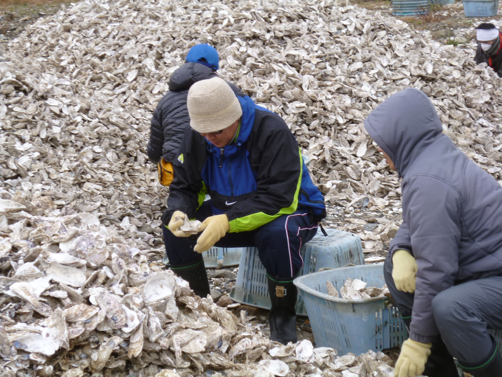 294 additional JEN volunteers were dispatched to help fishermen at various villages (‘hama’ in Japanese) of the Oshika Peninsula. At Jyusan-hama, assistance was given towards the cultivation of scallops between the 29th of November and the 6th of December. In Fukkiura and Odate, volunteers helped prepare the facilities for the aqua-farming of sea squirts, oysters and seaweed.