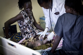 Photo: Mother and child at Juba Teaching Hospital, and Doctor checking on newborn